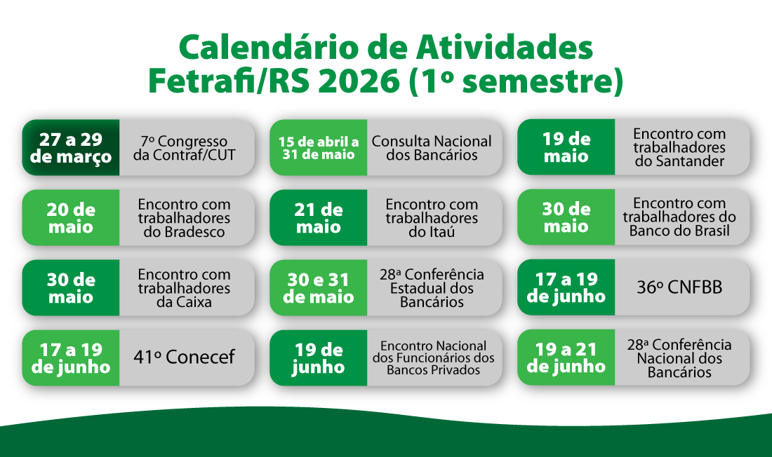 A diretora da Fetrafi-RS e coordenadora da COE Banrisul, Raquel Gil de Oliveira, informou que o movimento sindical segue negociando com o Banco alguns temas pendentes, com destaque para o processo dos caixas eventuais, que teve decisão favorável e aguarda execução e definição dos trabalhadores abrangidos. Também estão em debate o vale-alimentação para um grupo específico e questionamentos sobre o pagamento de bonificações. "Paralelamente, estamos organizando um calendário político-sindical, e a ideia é realizarmos nosso encontro nacional no final de junho, em um formato mais robusto para enfretar os desafios que teremos esse ano".